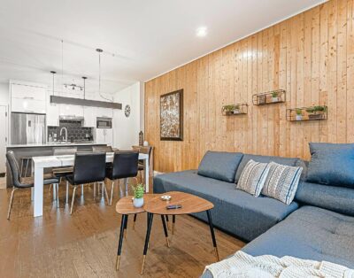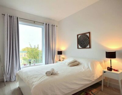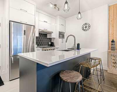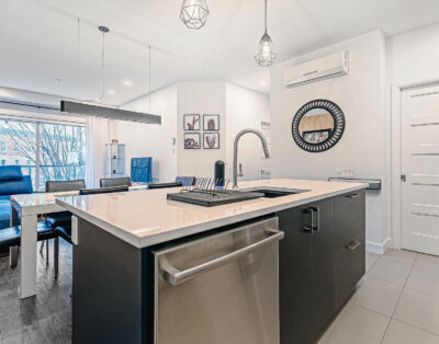 Fill up on light by booking Le Halo, a new condo in the magnificent Saint-Roch district of Quebec, with one bedroom and a sofa bed, perfect for 4 guests. You will notice the different quality coatings and the furniture giving off an aura of comfort. The kitchen includes new appliances and the island invites group meals to be prepared.