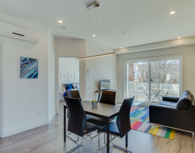 Bienvenue à Québec dans La Hutte, en plein quartier Saint-Roch ! Ce condo se veut rassembleur et invitant, puisqu’il peut loger 10 personnes. En famille ou entre amis, vous adorerez cet espace de vie de 4 chambres, dont l’une est identifiée comme salle de jeu. Apportez du maïs soufflé, puisqu’une table de babyfoot et une machine d’arcade vous attendent pour un tournoi en règle. Vous préférez l’air extérieur ?